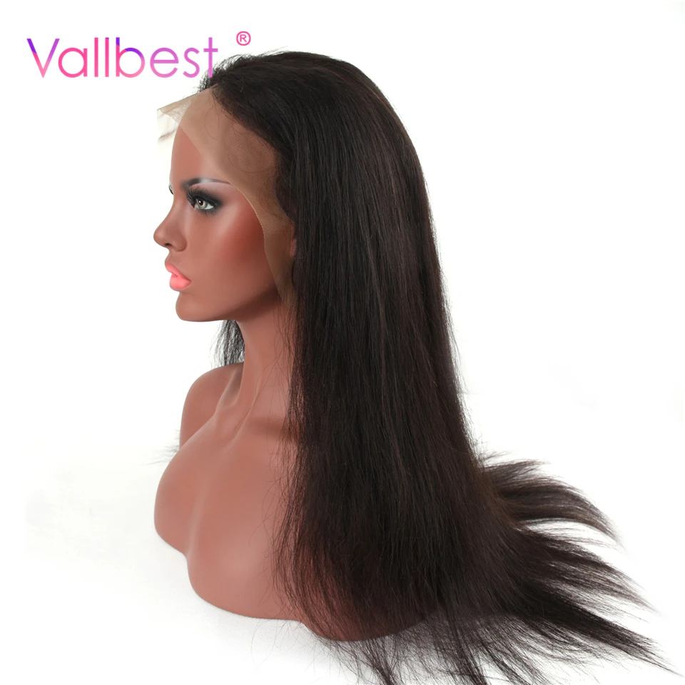 Check Price Vallbest 100% 360 Lace Front Human Hair Wigs For Black Women Remy Hair Natural Black Straight Wig With Baby Hair 150-260g in Box straight-human-hair-wigs Discount