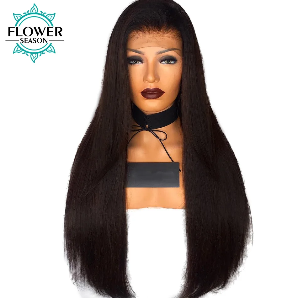 5 107 Video Reviews FlowerSeason 13*6 Deep Parting Lace Front Wigs Human Hair For Black Women Indian Non-Remy Hair 180% Density Silky Straight straight-human-hair-wigs
