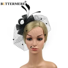 Do not wait BUTTERMERE Wedding Hat With Veil Black Fedora Women Feather Bride Hat For Party Cap Ladies Elegant Fancy Bowknot Pillbox Hat Red Hats Special Price Only !!!