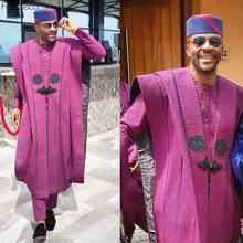 Latest price Fadzeco Agbada 2019 Men's African 3PCS Plus Size Dashiki Purple Embroidery Boubous Tops Shirt Pant Mens Clothes Formal Attire World Apparel