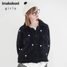 Discount Imakokoni original design black plush sewing flower jacket female wild Japanese simple 192799 Coats