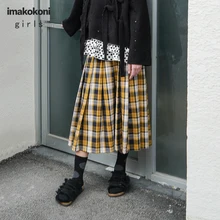 imakokoni yellow plaid skirt original design wild lady elegant long female spring and autumn 182554 Skirts